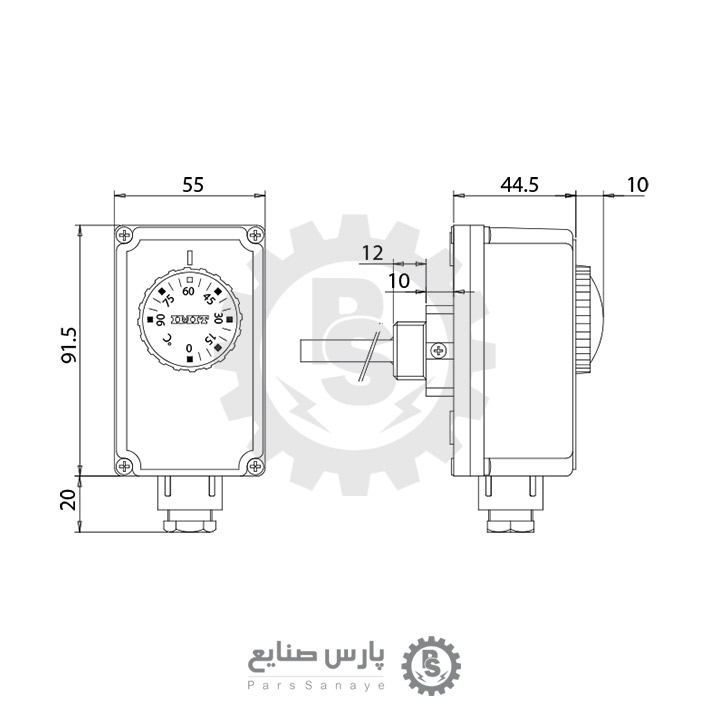 - محدوده اندازه گیری دما 0 تا 90+ درجه سانتیگراد